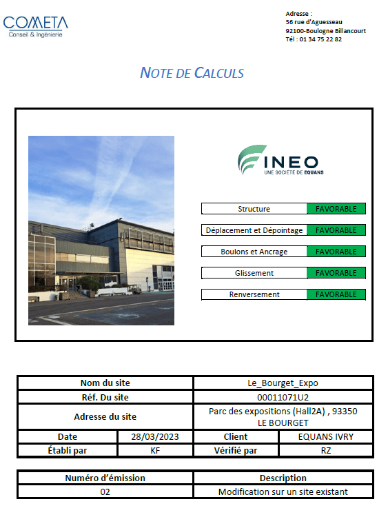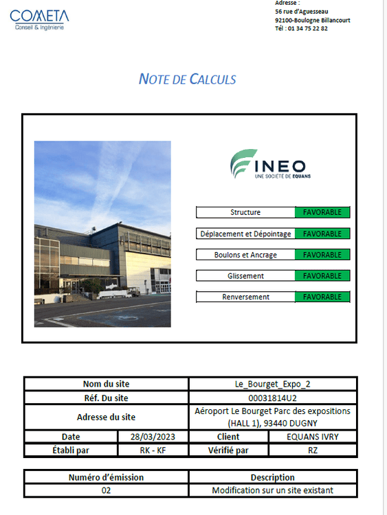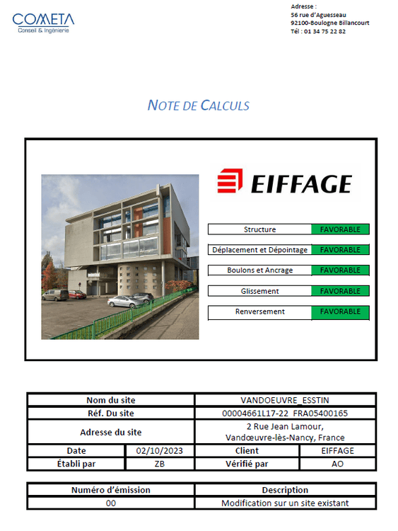Cometa réalise l’étude structurelle du bâtiment DC pour l’implantation d’une antenne Orange, incluant le NDC et le plan de fabrication